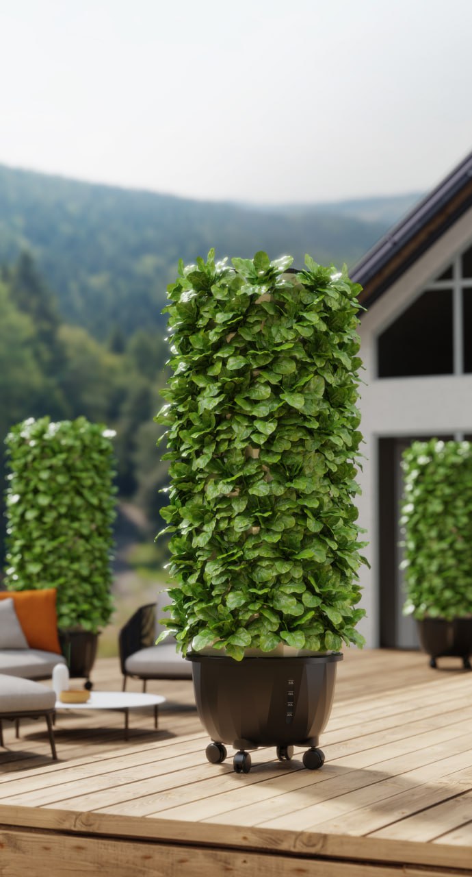 Идеально для семьи 3–5 человек, которая хочет всегда иметь под рукой свежую зелень, ароматные травы и хрустящие салаты. 48 растений в 12 ярусов, высота 1,8 м, большой бак 45 литров и мощные фитолампы в комплекте, которые можно снять при необходимости