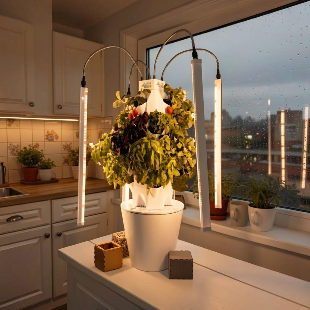 Первая уютная агробашня, которую легко поставить на подоконнике или кухне! Идеально для новичков, молодых семей и тех, кто живёт в небольшой квартире. 4 мощные фитолампы уже в комплекте и автоматический полив. Уход занимает всего 15–20 минут в неделю. Свежая зелень, ароматная мята цветы или сладкая клубника круглый год — прямо у вас дома